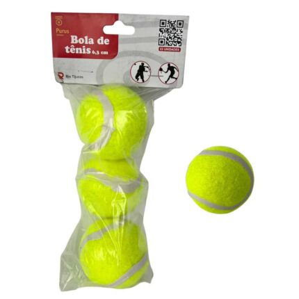 Kit com 3 bolas de tênis de 6,3 cm, resistentes e ideais para lazer, treino e prática esportiva.