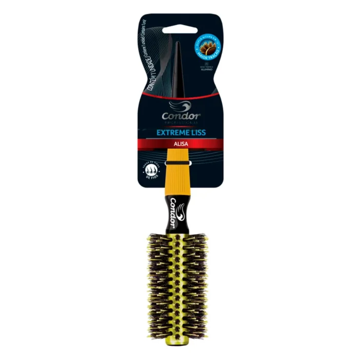 A Escova para cabelos Extreme Liss foi especialmente desenvolvida para você que deseja praticidade e segurança na hora de escovar os cabelos. Seu cabo de madeira emborrachada possui a base com tubo metálico e cerdas mistas que garantem uma escovação precisa e um cabelo impecavelmente liso. Além do seu design em V que possibilita a separação dos fios na hora da escovação. Sua base metalizada dispensa o excesso de ar quente sobre a mecha, uma vez que o calor retido em sua base ajuda a reduzir o tempo de secagem, evitando fios queimados.