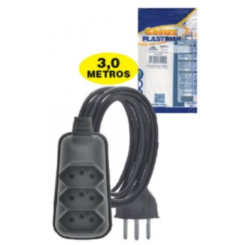 Possui três entradas para tomadas, possibilitando a ligação simultânea de diferentes aparelhos como ventiladores, televisores, carregadores, luminárias e pequenos eletrodomésticos. Fabricada com cabo resistente e estrutura plástica durável, oferece praticidade, resistência e longa vida útil.