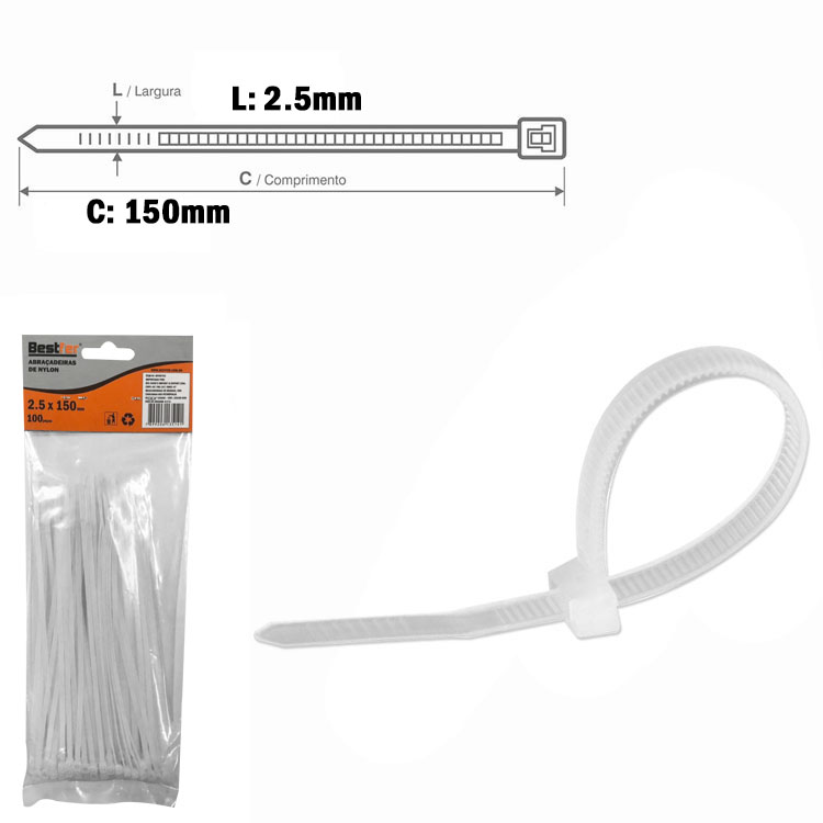 BF ABRACADEIRA DE NYLON BRANCA UN 2,5X150MM