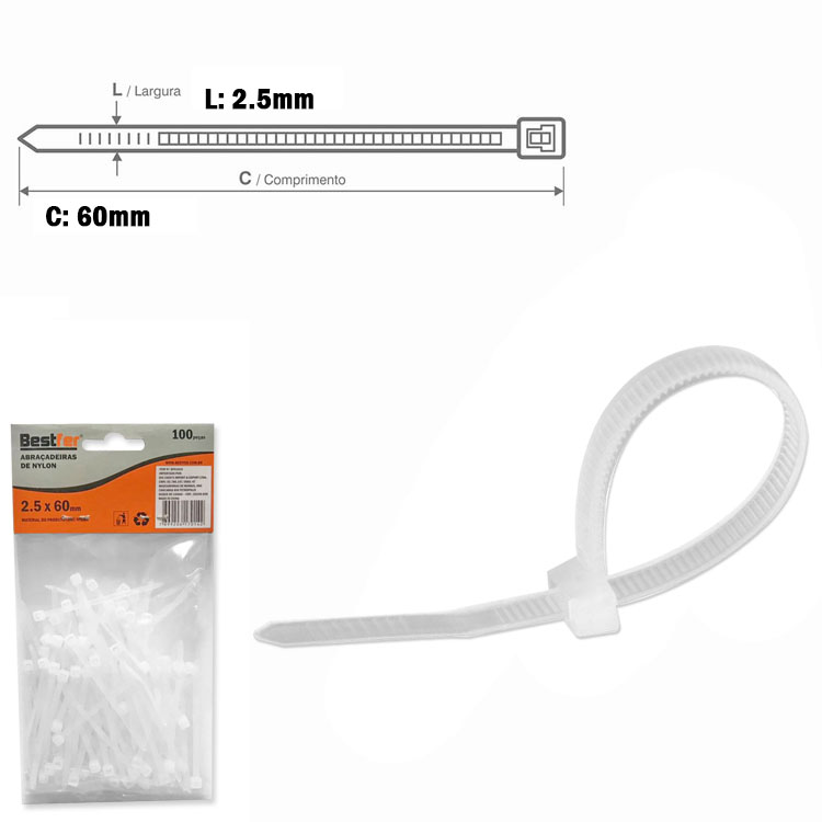 BF ABRACADEIRA DE NYLON UN BRANCA 2,5X60MM