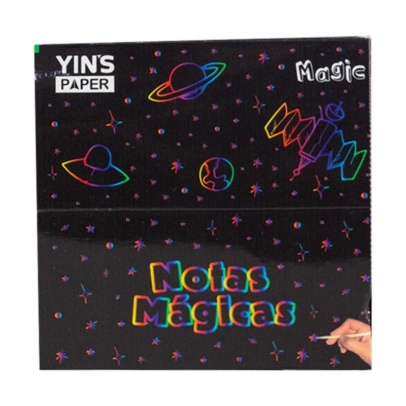 Bloco de notas Magico da Yins Paper com 125 folhas em cores sortidas projetado para uso escolar profissional e pessoal. Cada página oferece superfície lisa para escrita confortável com canetas lápis e marcadores. O tamanho compacto permite levar em bolsas mochilas e pastas facilitando o registro de ideias listas lembretes e informações importantes em qualquer lugar.