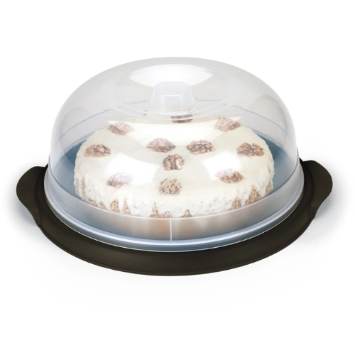 Boleira plástica com tampa, ideal para armazenar, proteger e transportar bolos e sobremesas.