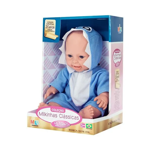A Boneca Milkinhas Clássicas Tubarão é uma adorável boneca que proporciona momentos de diversão e aprendizado para as crianças. Com 31 cm de altura, ela é confeccionada em vinil macio, proporcionando uma sensação realista ao toque. Vem acompanhada de uma roupinha temática de tubarão, estimulando o cuidado e a responsabilidade. Seu design encantador e expressão facial amigável tornam-na uma companheira perfeita para brincadeiras lúdicas. Ideal para crianças a partir de 3 anos, esta boneca auxilia no desenvolvimento da coordenação motora, imaginação e habilidades sociais.