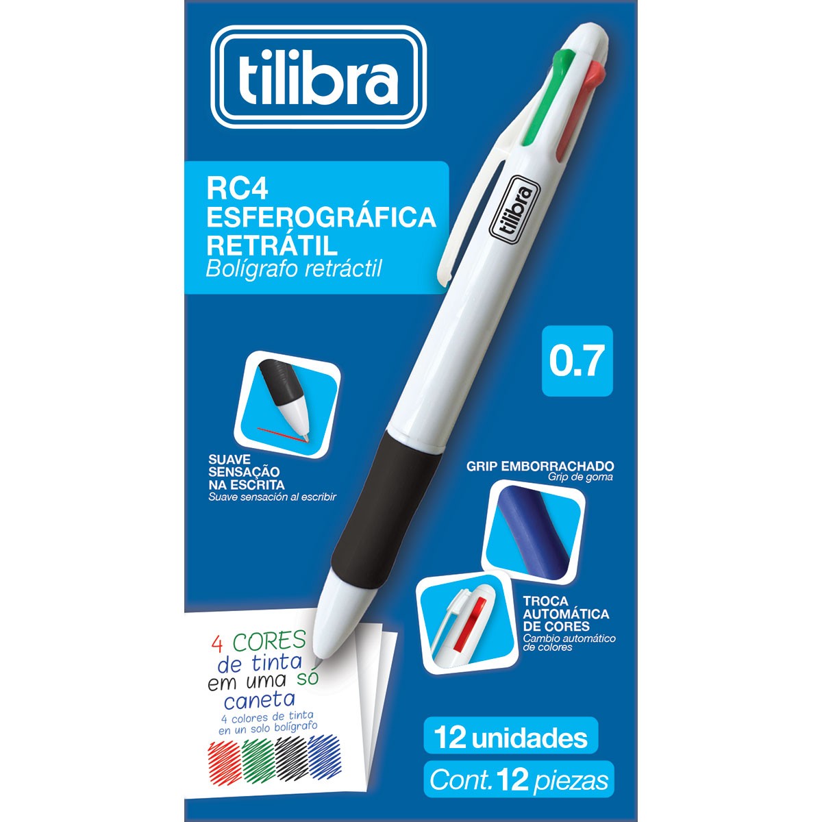 A caneta esferográfica 4 cores da ACCO Brands Brasil é uma opção prática e funcional para quem precisa alternar cores durante a escrita sem trocar de caneta. Possui ponta de 0.7 mm que proporciona traços uniformes e escrita suave, sendo indicada para uso escolar, escritório, estudos e organização de anotações. Seu design compacto facilita o transporte e o uso no dia a dia.