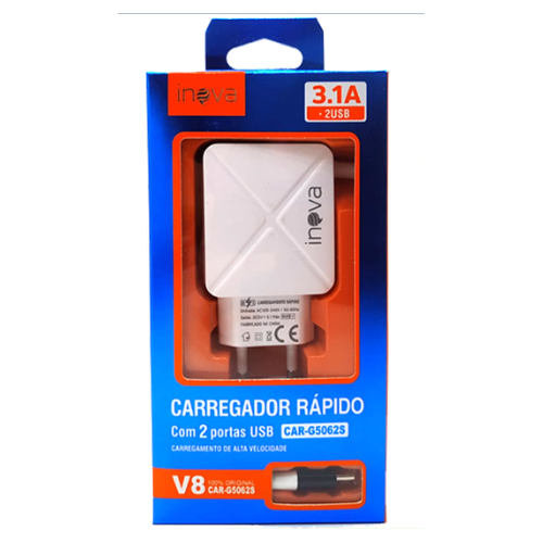O Carregador Rápido Inova CAR-G5062 foi desenvolvido para proporcionar carregamento mais ágil e estável, reduzindo o tempo necessário para recarregar smartphones e outros dispositivos compatíveis. É indicado para uso diário em casa, no trabalho ou em viagens, oferecendo praticidade e confiabilidade.