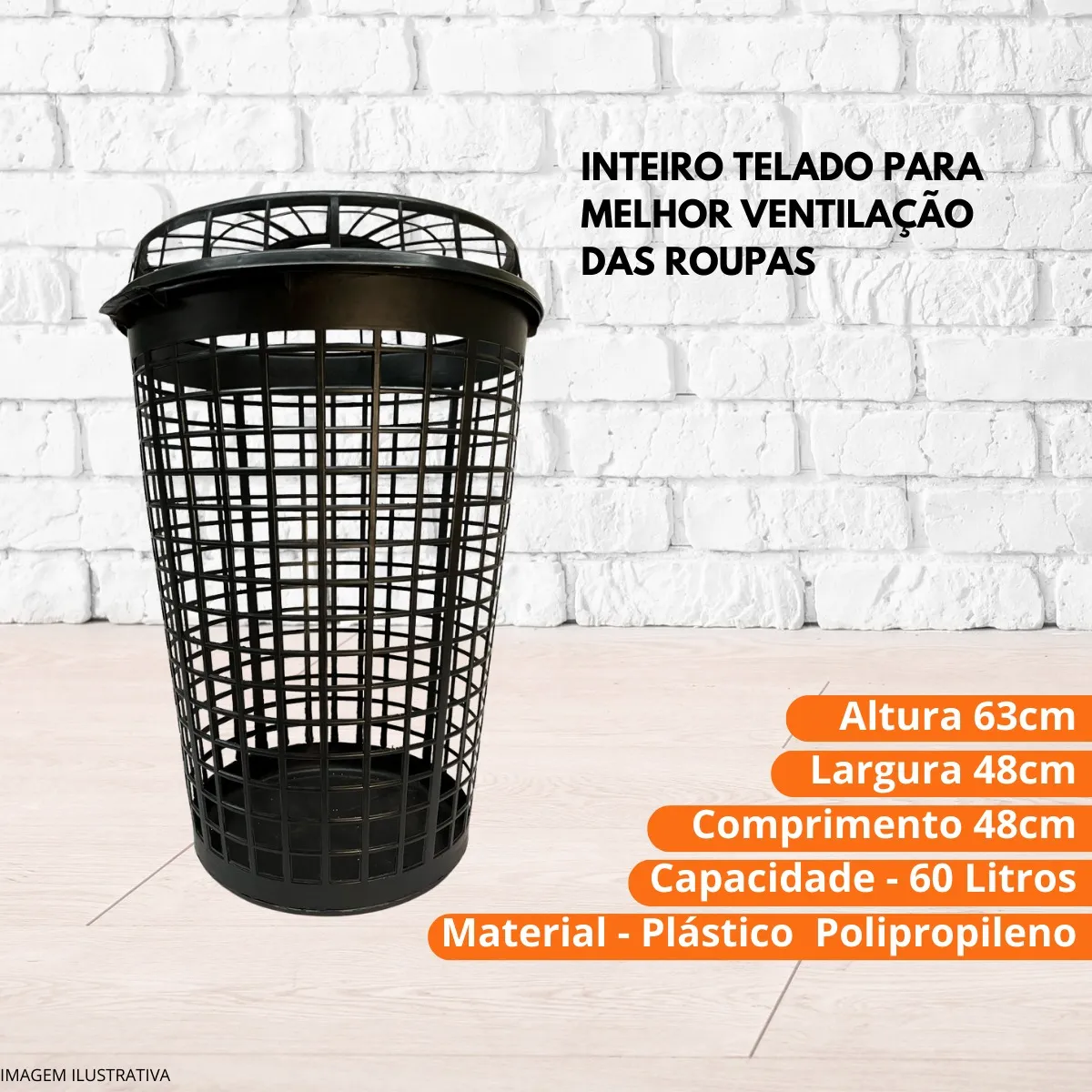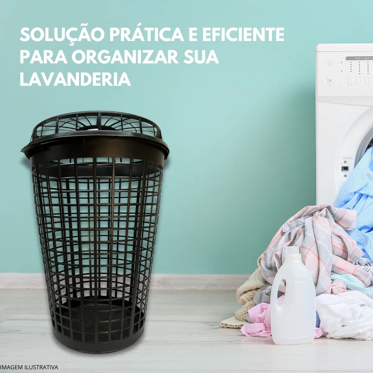 Fabricado em plástico resistente e maleável, o cesto possui uma tampa que ajuda a ocultar o conteúdo, proporcionando um visual mais agradável e evitando odores indesejados. Suas dimensões de 48 cm de largura e 63 cm de altura oferecem capacidade suficiente para armazenar roupas sujas ou lixo, adaptando-se facilmente às suas necessidades.