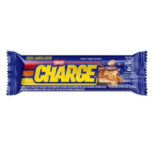 Chocolate Charge da Nestlé com combinação marcante de chocolate ao leite, caramelo e amendoim, oferecendo sabor intenso e textura diferenciada. Possui 40 g, ideal para consumo individual em lanches, pausas do dia ou momentos de indulgência. Produto conhecido pela mistura equilibrada de doçura e crocância, sendo prático para transportar e pronto para consumo. Fornecido embalado para comercialização.