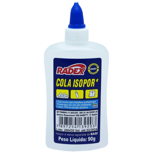 A cola especial para isopor Radex 90g foi desenvolvida para proporcionar colagem eficiente sem agredir o isopor. Oferece ótima aderência, aplicação prática e secagem adequada, garantindo acabamento limpo e firme. É ideal para uso em atividades escolares, artesanato, maquetes e projetos criativos, permitindo a união segura entre peças de isopor e outros materiais compatíveis.