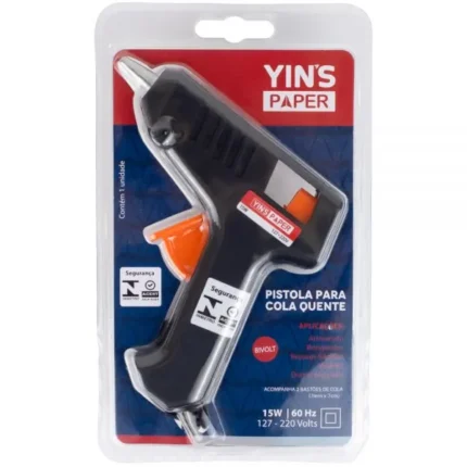 PISTOLA PARA COLA QUENTE 15W PRETO COM LARANJA YINS PAPER
