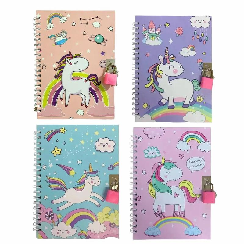 Diario com cadeado da Yins Paper no tema unicornios desenvolvido para estimular a escrita criativa e a organização pessoal. Possui 48 folhas internas adequadas para anotações desenhos e registros do dia a dia. O cadeado garante maior privacidade tornando o produto atrativo para uso infantil e juvenil. Indicado para uso escolar doméstico e como item de presente.