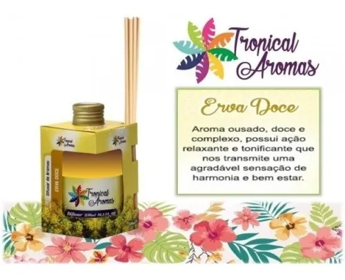 O difusor de ambiente Tropical Aromas fragrância erva doce é ideal para criar um ambiente acolhedor e relaxante. Sua fragrância suave e levemente adocicada proporciona sensação de calma e bem-estar, sendo perfeita para momentos de descanso e tranquilidade.