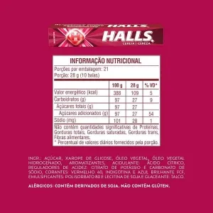 Bala Halls sabor cereja 28 g, com refrescância intensa e sabor frutado marcante.