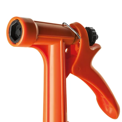 Seu formato anatômico tipo revólver proporciona maior conforto durante o uso, facilitando o manuseio e reduzindo o esforço nas mãos. Possui sistema de регулиagem que permite variar entre jato concentrado e aberto, garantindo versatilidade no uso diário.