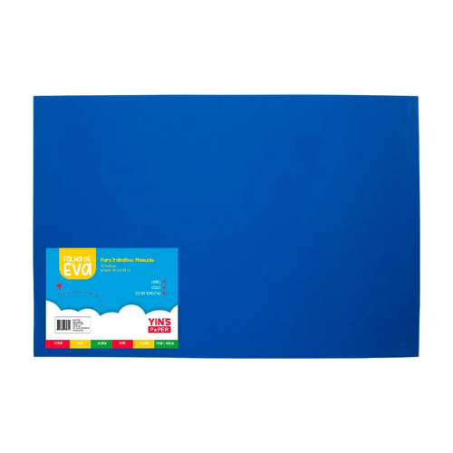 A folha de EVA azul escuro Yins Paper é ideal para a confecção de trabalhos manuais, projetos escolares e peças decorativas que exigem cor sólida e acabamento uniforme. Sua tonalidade azul escuro proporciona visual discreto e elegante, sendo muito utilizada em painéis, recortes, letras decorativas, maquetes e lembrancinhas.