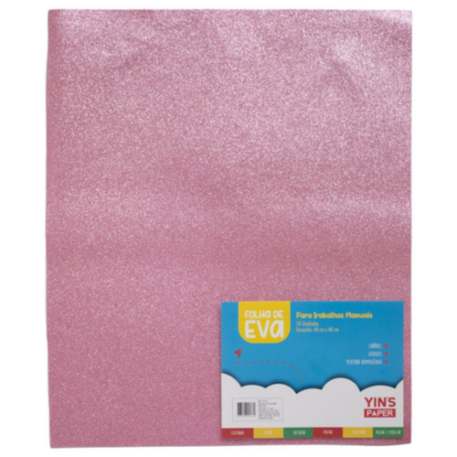 Folha de EVA rosa com glitter Yins Paper ideal para artesanato, decoração e atividades escolares.