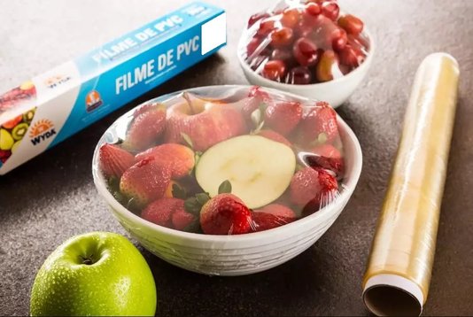O filme PVC é uma fina película plástica levemente elástica e aderente em superfícies lisas. É utilizado para proteger e conservar alimentos, aumentando assim sua durabilidade.