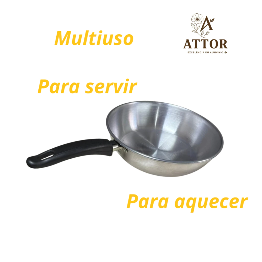 O formato cônico da frigideira ajuda na distribuição dos alimentos e facilita o manuseio com espátulas durante o preparo. O alumínio polido proporciona aquecimento rápido, permitindo preparar receitas de forma ágil e eficiente.