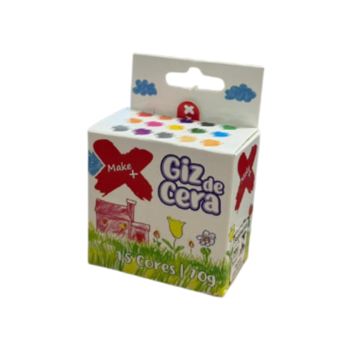 Produzido com materiais de alta qualidade e atóxicos, garante segurança para uso escolar e doméstico. Cada caixa contém 70g de giz de cera distribuído em 15 cores diferentes, estimulando a criatividade e o aprendizado artístico.