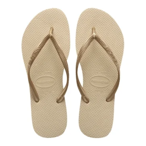A Havaianas Slim Feminina na cor Areia/Dourado Claro oferece visual refinado com tiras finas e acabamento delicado. Projetada para proporcionar conforto em todas as ocasiões, conta com solado em borracha de alta durabilidade e aderência. O modelo 31/32 é ideal para quem busca um chinelo leve, resistente e estiloso para uso diário, lazer, praia e combinações casuais. As tiras finas e o tom dourado claro conferem toque sofisticado ao visual.