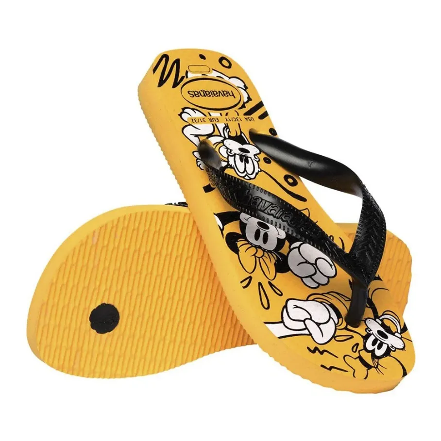 O chinelo Havaianas Kids Disney é perfeito para crianças que buscam conforto aliado a um visual divertido. Na cor amarelo, o modelo conta com estampa inspirada no universo Disney, trazendo mais alegria e estilo para o dia a dia.