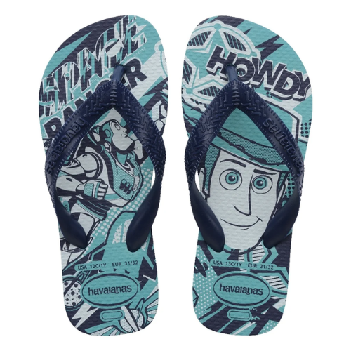 Chinelo infantil Havaianas Kids Disney azul marinho, leve, confortável e ideal para o uso diário.