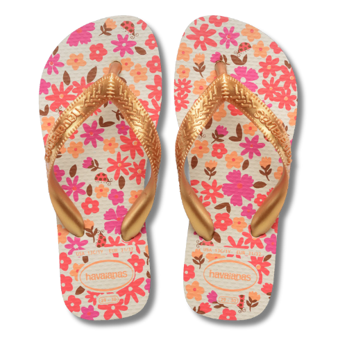 O chinelo Havaianas Kids Flores Buttercream é perfeito para crianças que gostam de conforto e estilo. Com estampa floral delicada e tons suaves, o modelo oferece a combinação ideal entre beleza e praticidade. Possui sola em borracha macia, tiras confortáveis e excelente durabilidade para acompanhar a rotina infantil.
