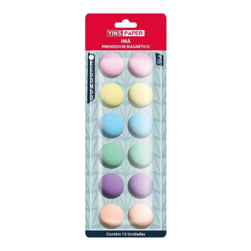 Imã em tons pasteis da Yins Paper desenvolvido para organização e decoração de superfícies metálicas. O kit contém 12 unidades com cores suaves e sortidas que proporcionam visual moderno e delicado ao ambiente. Cada imã possui 3 cm de diâmetro oferecendo boa fixação para papéis lembretes fotos e avisos sem danificar o material. Indicado para uso em geladeiras quadros magnéticos murais metálicos e superfícies similares sendo amplamente utilizado em ambientes residenciais escolares e corporativos. Produto funcional e decorativo ideal para organização do dia a dia e atividades educativas.