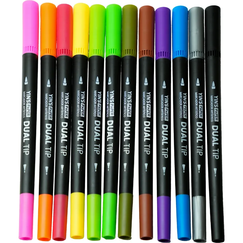 12 marcadores artístico dual tip em estojo plástico resistente