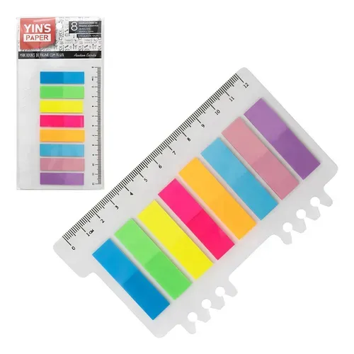 MARCADOR DE PAGINA ADESIVO COM REGUA 08 CORES YINS PAPER
