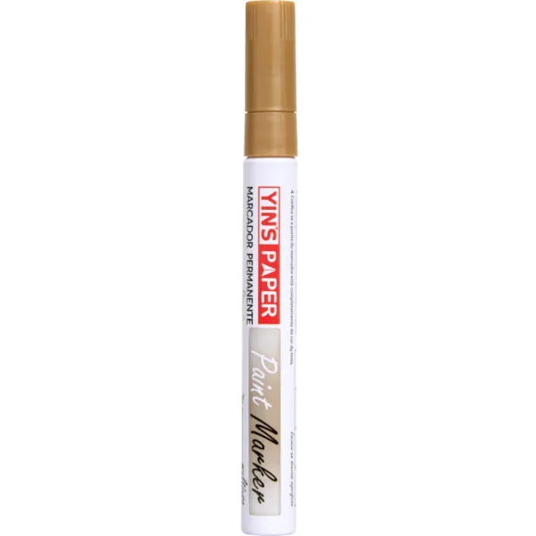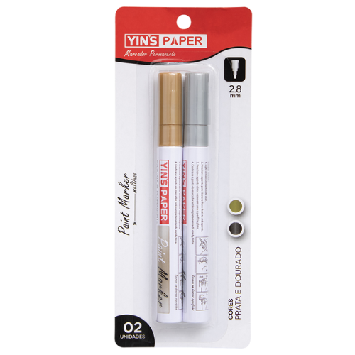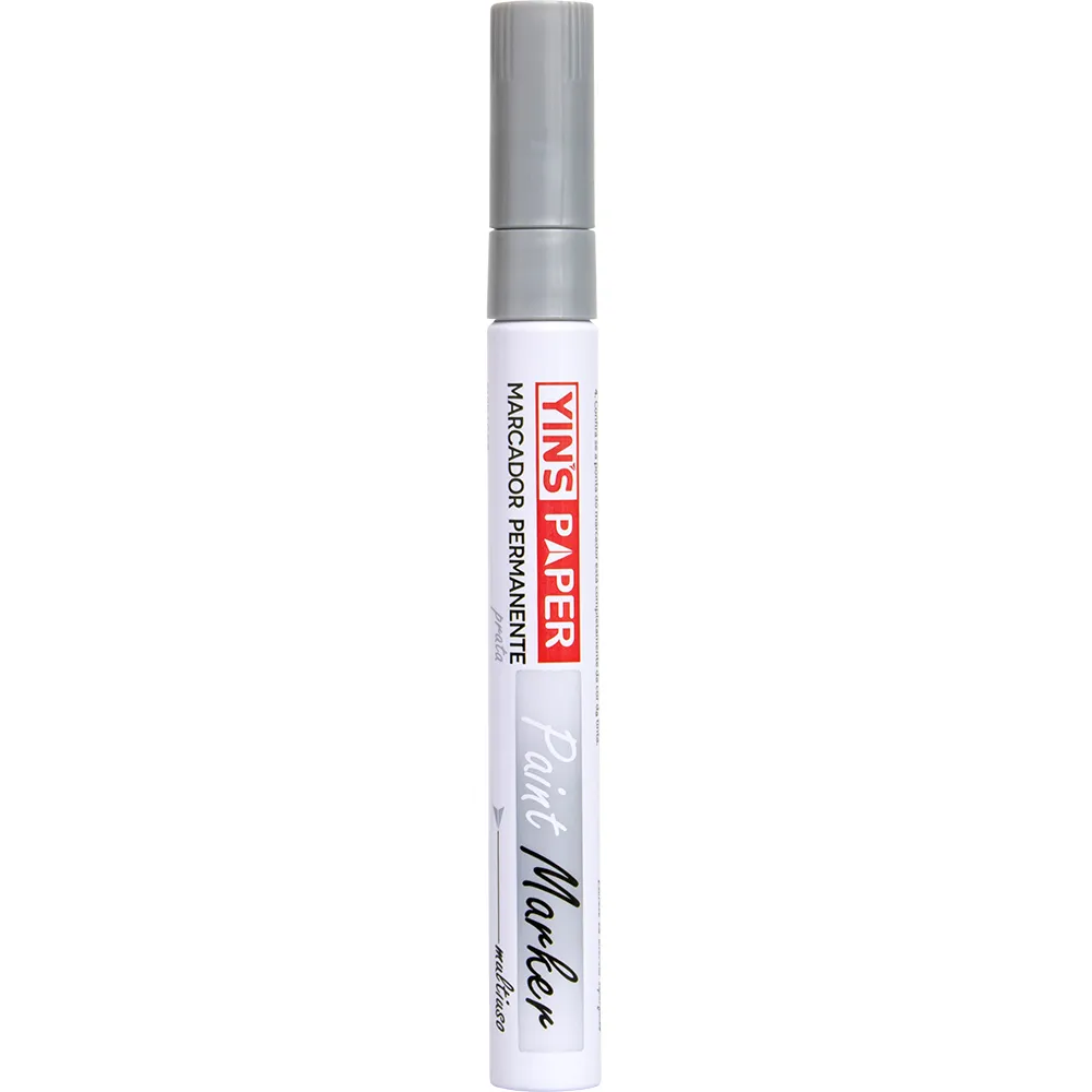 MMarcador permanente multiuso da Yins Paper desenvolvido para oferecer escrita decorativa com alto destaque visual. Disponivel nas cores prata e dourado proporciona acabamento metalizado ideal para personalizacao identificacao e decoracao. A tinta permanente apresenta boa cobertura secagem rapida e aderencia eficiente garantindo marcacoes duradouras e uniformes. Indicado para uso em papel cartolina plastico vidro metal madeira e outras superficies adequadas sendo amplamente utilizado em artesanato projetos escolares trabalhos decorativos sinalizacao e uso profissional.