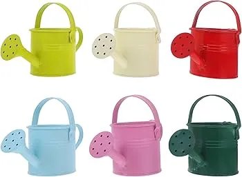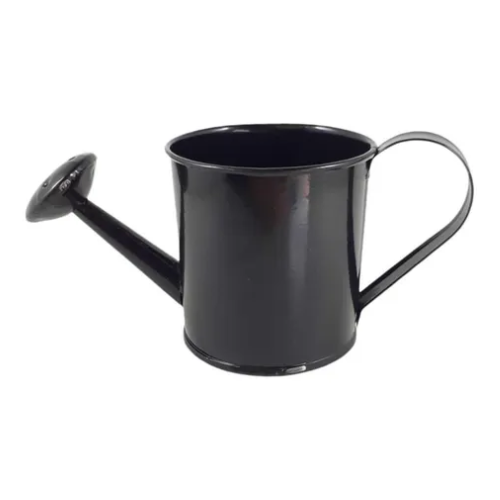Mini regador de metal 14×6,5cm indicado para jardinagem leve, vasos e uso decorativo.