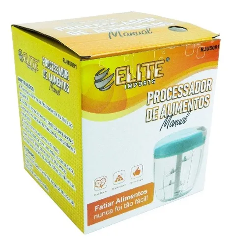 Processador manual 900ml com 5 lâminas, ideal para triturar alimentos com rapidez sem uso de energia elétrica.
