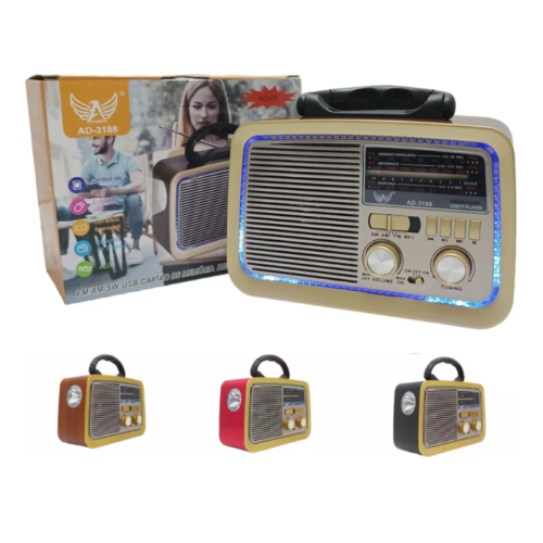 O Rádio AD-3188 da Altomex é um aparelho portátil desenvolvido para proporcionar praticidade e entretenimento no dia a dia. Possui recepção de rádio AM e FM, permitindo acompanhar músicas, programas e notícias com facilidade. Seu design compacto facilita o transporte, sendo ideal para uso doméstico, ambientes externos, viagens ou momentos de lazer. Oferece operação simples e funcional, atendendo às necessidades básicas de quem busca um rádio portátil eficiente.