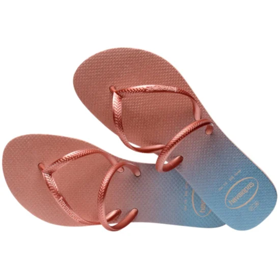 A sandália Havaianas Flat Duo Irid na cor rosa ballet é a escolha perfeita para quem busca conforto aliado a um visual moderno e delicado. Com design diferenciado, o modelo possui tiras finas com acabamento iridescente que adiciona um toque sofisticado e elegante ao produto.