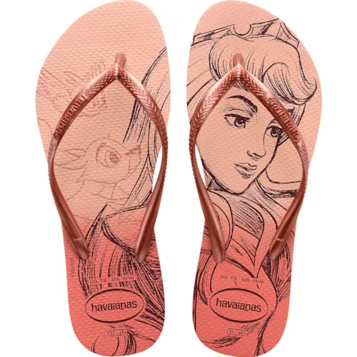 Sandália Havaianas Slim com estampa Princesas em tom rosa ballet, leve, confortável e ideal para o dia a dia.