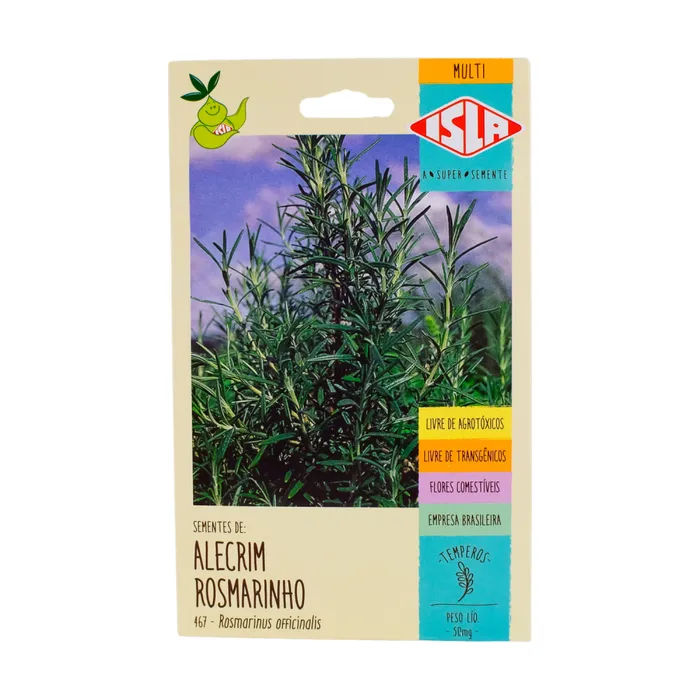 O alecrim é uma das ervas aromáticas mais produtivas do mundo, sua duração é indeterminada, podendo render diversas colheitas por longos anos. Plantio de inverno a verão. A Semente de Alecrim Rosmarino Isla 0,05g, é um dos produtos com maior rotatividade nas lojas e será um diferencial em seu estabelecimento. Um dos principais temperos da culinária global. Época de semeadura para o estado de São Paulo é o ano todo e no Sul de Minas Gerais vai de setembro a maio. Ciclo de 90 dias no verão e 120 dias no inverno.