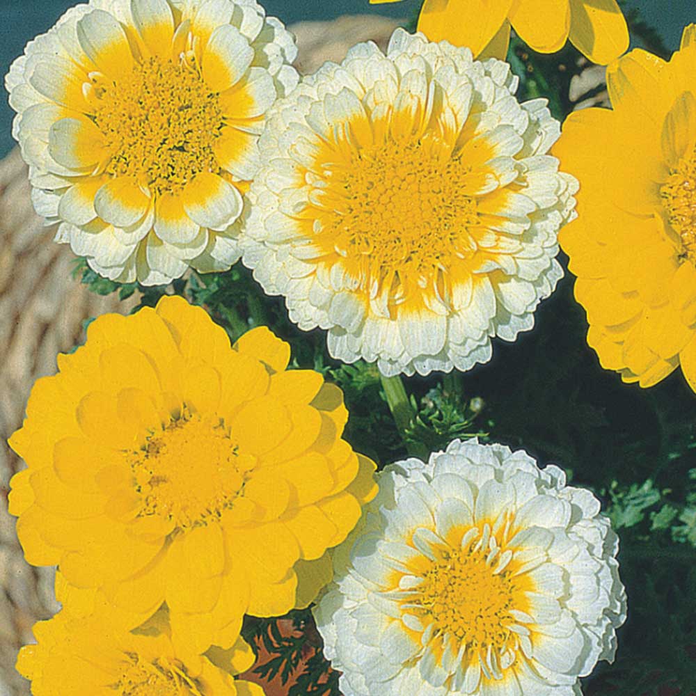 Uma das plantas mais populares do Brasil, apresenta flores compactas de muitas pétalas nas cores amarelo, branco e creme.