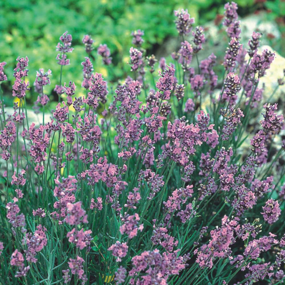 - Crescimento em maços com folhas estreitas, compridas e verdes acinzentadas com flores de cor violeta.