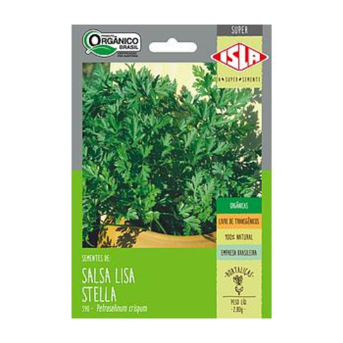 A Semente de Salsa Lisa Stella ISLA é uma variedade muito apreciada por sua produtividade, sabor acentuado e versatilidade culinária. Suas folhas lisas e bem formadas apresentam aroma forte e fresco, sendo amplamente utilizadas em temperos, saladas, finalização de pratos e preparo de molhos.