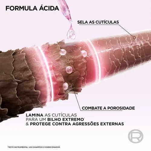 Cabelo visivelmente saudável e alinhado para um brilho gloss que dura até 72h.