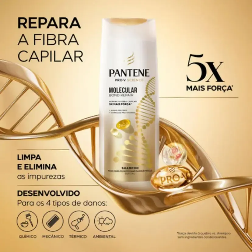 O Shampoo Pantene Molecular Bond Repair 175ml foi formulado para cuidar de cabelos danificados, ressecados ou enfraquecidos, promovendo uma limpeza delicada enquanto repara a estrutura capilar em nível molecular. Sua tecnologia com Amino-Peptídeo e Complexo Pro-Vitamina prepara os fios para absorver agentes reparadores, fortalecendo e protegendo contra danos futuros. O uso contínuo ajuda a reduzir a quebra, melhorar a resistência da fibra capilar e deixar os fios mais macios, saudáveis e com brilho natural. Ideal para uso diário e como etapa inicial de um tratamento capilar completo.