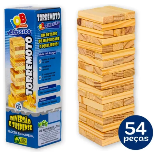 O Jogo Terremoto Gigante 54 Peças da IOB Artepinus é um clássico jogo de equilíbrio produzido com peças de madeira, ideal para proporcionar momentos de diversão e desafio entre amigos e família. O objetivo é simples e envolvente: retirar as peças da torre e reposicioná-las no topo sem deixar a estrutura cair, exigindo habilidade, concentração e precisão a cada movimento.