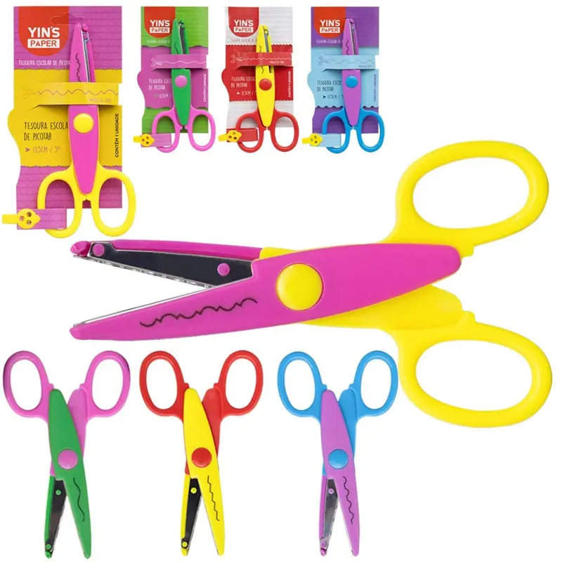 Tesoura de picotar da marca Yin’s Paper desenvolvida para criar cortes decorativos com acabamento ondulado em papel cartolina EVA fino e materiais similares. Ideal para artesanato scrapbook trabalhos escolares e projetos criativos. Possui lâminas metálicas resistentes que proporcionam corte preciso e uniforme e cabo ergonômico que oferece conforto e controle durante o uso. Produto indicado para uso escolar doméstico e em ateliês de artesanato.
