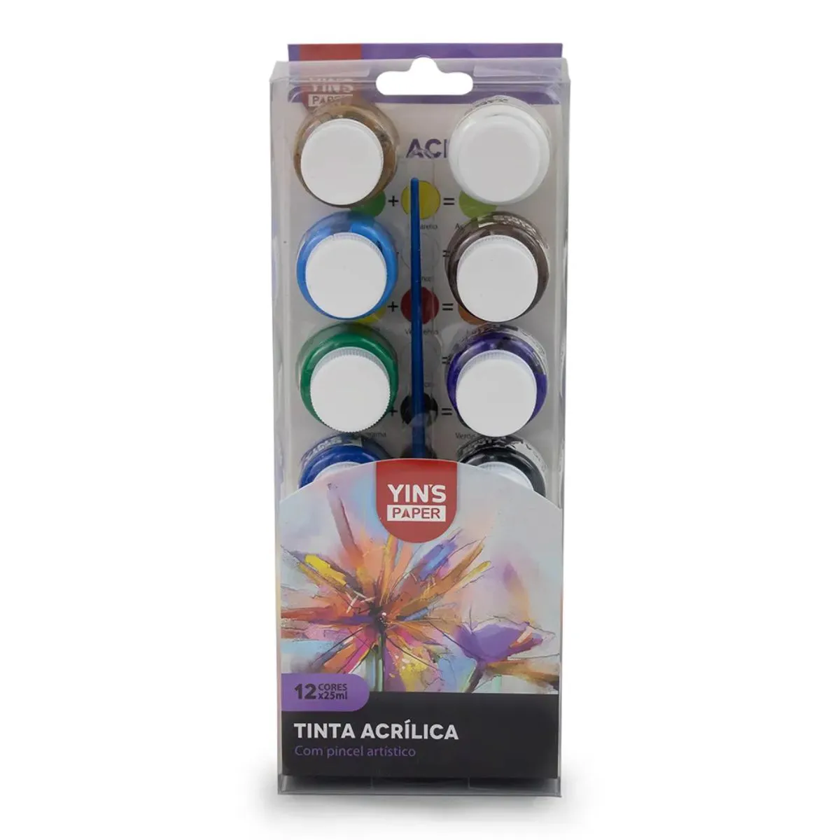 TINTA ACRILICA 12 CORES E 1 PINCEL ARTISTICO YINS PAPER