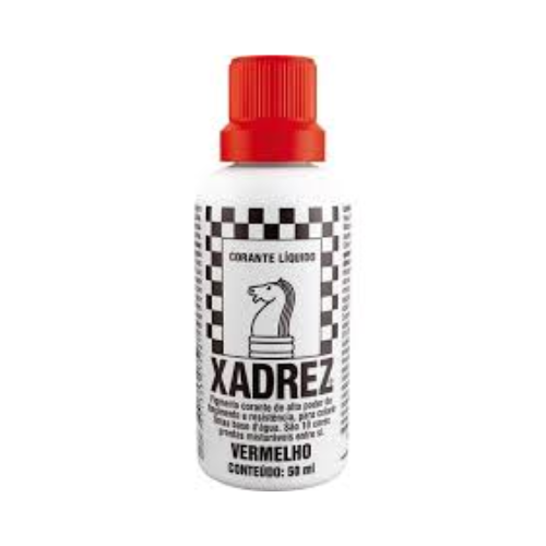 Corante líquido “Xadrez” em bisnaga de 50 ml, cor vermelho intenso, alto rendimento e ideal para tingimento de tintas à base de água.
