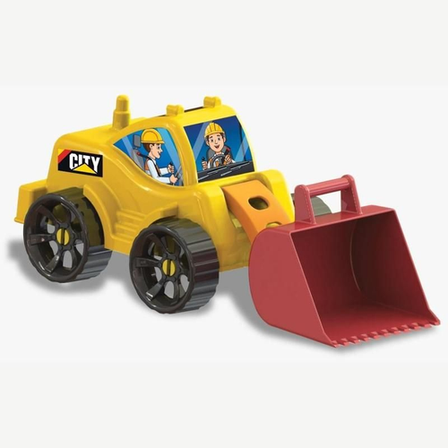 Com design detalhado e cores vibrantes, o trator conta com pá frontal que permite simular atividades de escavação e transporte de pequenos objetos como areia, terra ou brinquedos leves. Esse tipo de brincadeira estimula a coordenação motora, a criatividade e a percepção espacial, além de incentivar o desenvolvimento da imaginação por meio de cenários de construção.