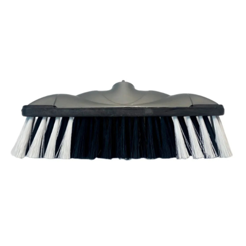 A base é produzida em plástico resistente, oferecendo boa durabilidade e leveza durante o uso. O produto é fornecido sem cabo, sendo compatível com cabos rosqueáveis padrão utilizados em vassouras domésticas.