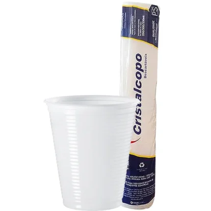 Copo Plástico Descartável Água 180ml Branco Com 100 Unidades – Cristalcopo. Tamanho tradicional, ideal para beber água de forma higiênica;